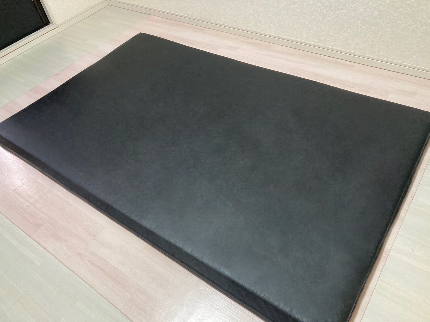 マットを平らな場所に広げ、シワやたるみがないように調整します。